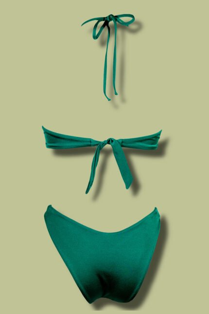 Linea essenziale e dettagli di stile per questo bikini composto da un top a fascia con coulisse centrale, che consente di regolare l’arricciatura e si annoda delicatamente al collo, offrendo sostegno e un tocco femminile. Il design valorizza il décolleté con eleganza, lasciando le spalle libere per un’abbronzatura uniforme.
